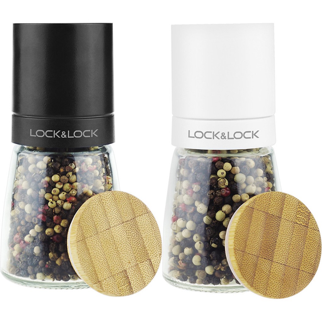 Giới thiệu Bộ 2 hũ xay tiêu thủy tinh Lock&Lock CKO115S2 140ml Màu đen & trắng – Hàng chính hãng